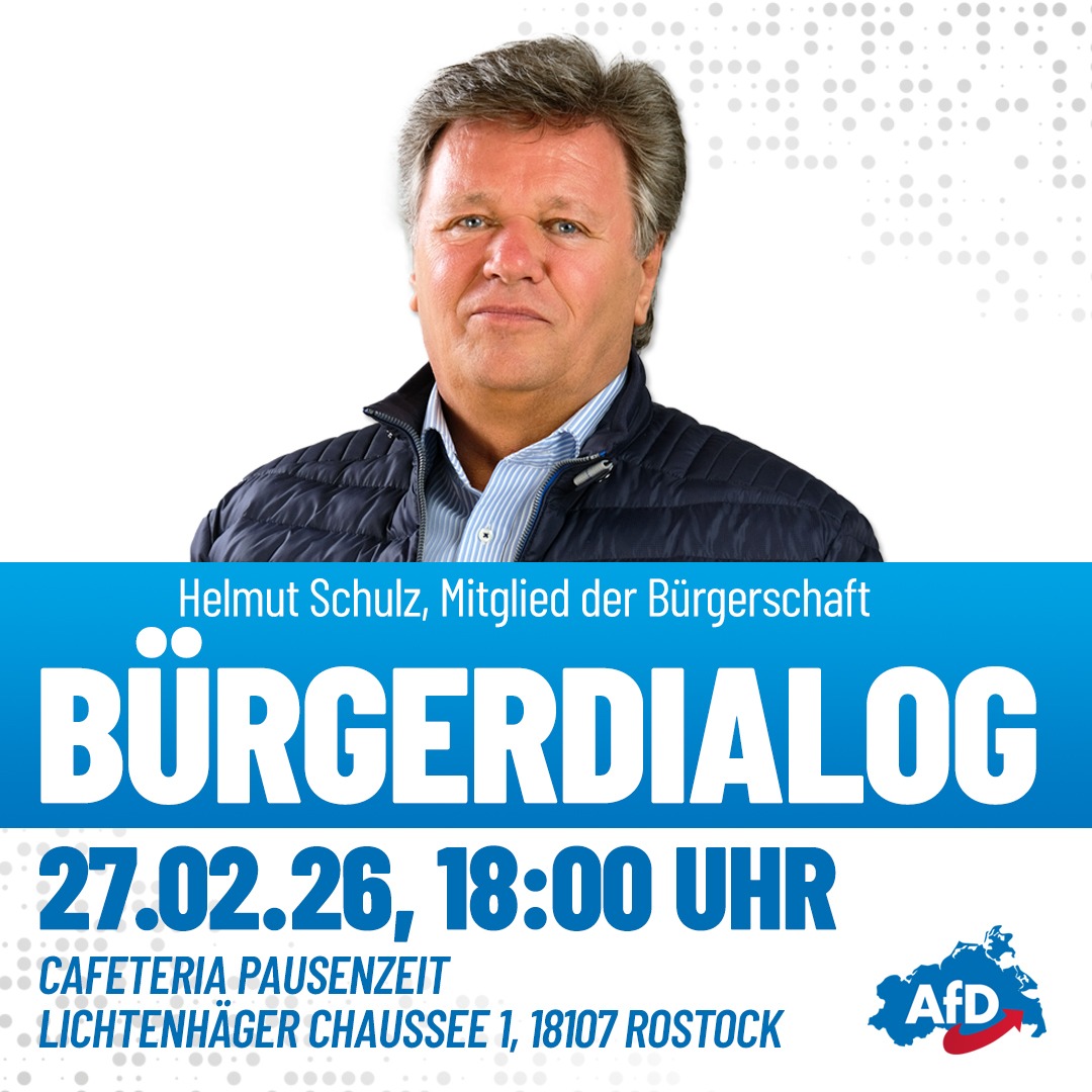 Kommen Sie vorbei zum Bürgerdialog mit Helmut Schulz, unserem Mitglied aus der Rostocker Bürgerschaft!